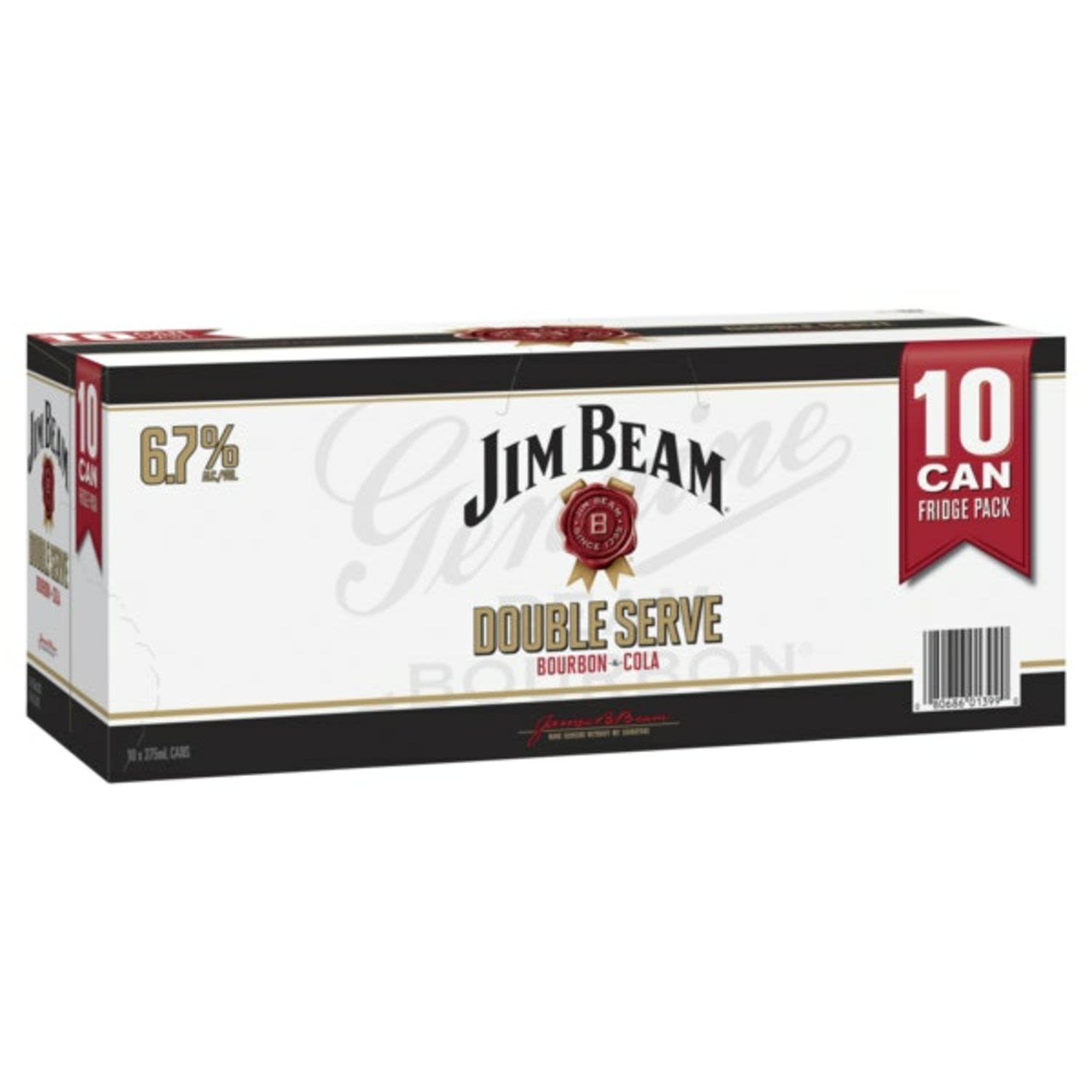 Jim Beam Double Serve Bourbon & Cola is crafted for bourbon lovers who enjoy a stronger, richer flavour. This premium premix combines a generous serve of authentic Kentucky Straight Bourbon with smooth, refreshing cola for a bold and satisfying taste experience. With an elevated 6.9% ABV, it delivers extra warmth and depth while maintaining the smooth, balanced character Jim Beam is known for. The 10 pack format is perfect for sharing with friends or stocking up for weekends and gatherings.